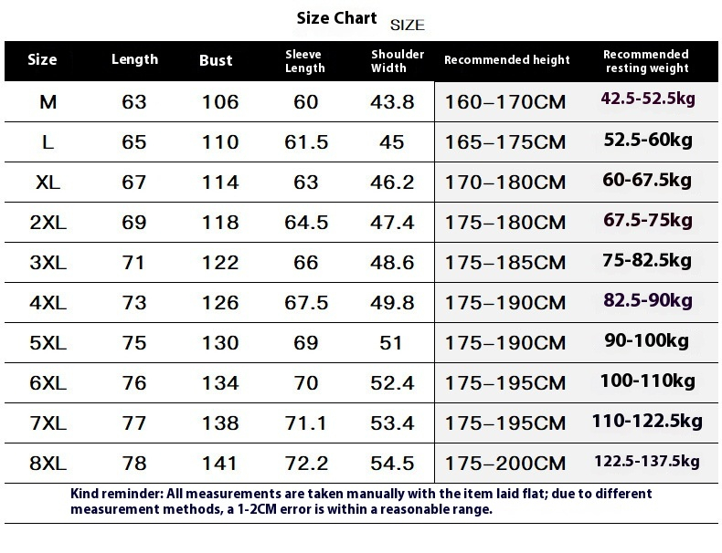 Size: M,L,XL,2XL,3XL,4XL,5XL,6XL,7XL,8XL